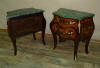 Art.XF80 Coppia di Comodini in Noce Lui & Lei Intarsiati in Acero e Bosso Piano in Marmo del Guatemala